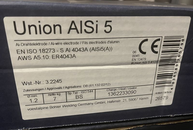 Kvalitní svářecí drát německého výrobce vhodný pro sváření hliníku AlMgMn, AlMn, AlMgSi slitin s obsahem hořčíku do 5%.